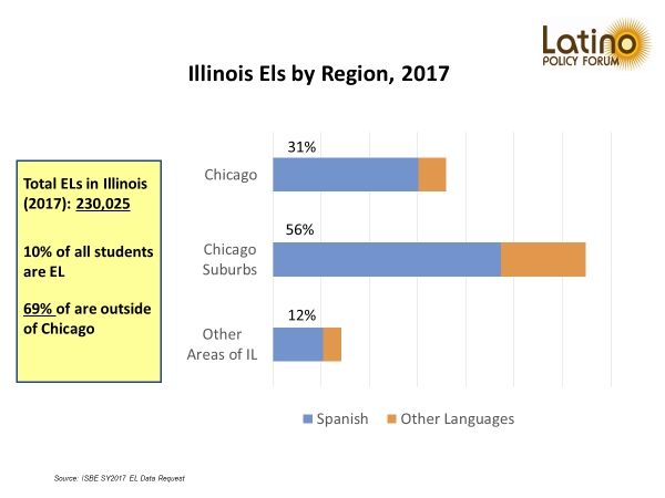 Within this demographic shift, the majority of students come from immigrant families who are typically unfamiliar with how to navigate the school system in the United States. They also have a range of levels of proficiency in English and varied levels of academic native language. The term “English Learner” has been used since No Child Left Behind to describe students who need specialized instruction to master the academic English necessary for scholastic success. Illinois is currently referring to English Learners as “Emergent Bilinguals,” to focus on their potential to become fully multilingual. These students’ educational experiences and academic opportunities serve as a critical conduit for how they will flourish and succeed as adults. The preparedness of educators to build on students’ linguistic and cultural strengths has a major impact on the future of Illinois.