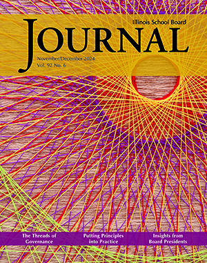 The November/December 2024 issue of the Illinois School Board Journal weaves the meaning of governance with the Foundational Principles from the perspectives of leadership, policy, practice, and heart. Find the Journal in your mailbox, read selected text below, or read Journal's digital edition flipbook.